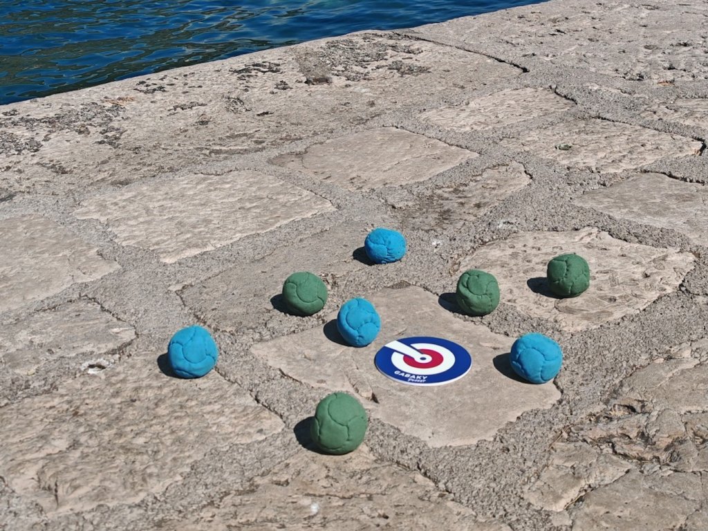 Niečo medzi petanque, shuffleboard a curling v cestovnom prevedení.