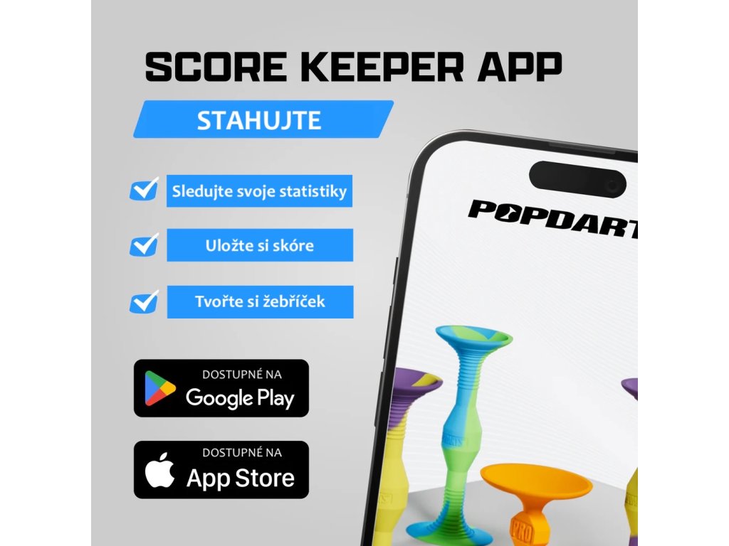 - Stiahnite si oficiálnu Popdarts aplikáciu a sledujte štatistky, ukladajte si skóre a ďalšie.